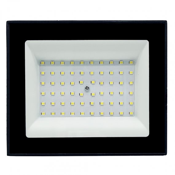 Прожектор светодиодный многоматричный с монтажным креплением на кронштейн, (ДО) SAFFIT SFL51-100, 100W, 6500К (дневной), 220-240V/50Гц, 8000Lm, IP65, угол рассеивания 120°, 72*SMD2835, раб.t -40°C - +40°C, цвет черный, корпус алюминий литой под давлением + стекло, 156*131*28 мм