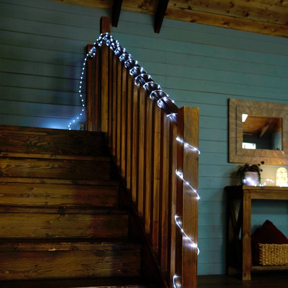 Гирлянда линейная FERON CL587, 260LED, 5000К (белый), настраивается контроллером, 13м+2м прозрачный шнур, расстояние между светодиодами 5смсм, IP20, 3W, от сети контроллер в комплекте, последовательное подключение - НЕТ