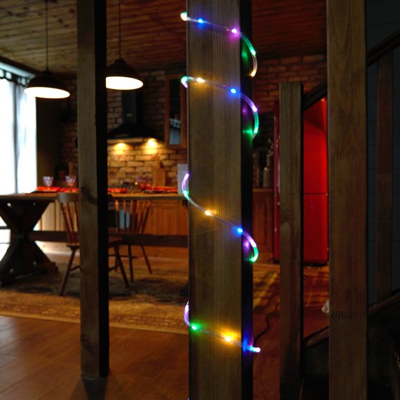 Гирлянда линейная FERON CL587, 260LED, (мультиколор), настраивается контроллером, 10м+2м прозрачный шнур, расстояние между светодиодами 5смсм, IP20, 3W, от сети контроллер в комплекте, последовательное подключение - НЕТ
