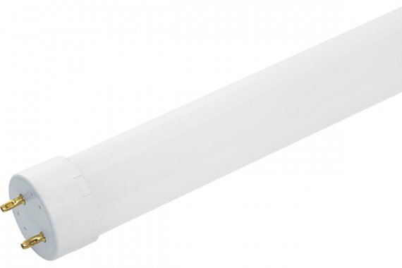 Лампа светодиодная SAFFIT SBT6010, T8 (линейная двухцокольная), 10W 230V G13 6400К (дневной), рассеиватель матовый белый, 750Lm, угол рассеивания 220°, 605*26мм