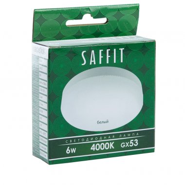 Лампа светодиодная SAFFIT SBGX5306, GX53 (таблетка), 6W 230V GX53 4000К (белый), рассеиватель матовый белый, 510Lm, угол рассеивания 120°, 26*74мм