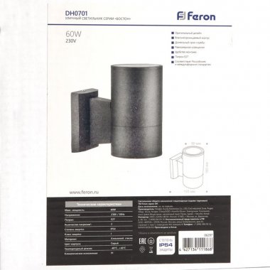 Светильник садово-парковый, серии «Бостон», (НБУ) FERON DH0701 60W, E27, 230V, IP54, цвет черный, цилиндр, на стену вверх, 155*90*160мм