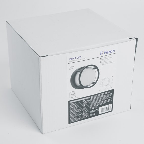Светильник уличный светодиодный, на стену (ДБУ) FERON DH107, серия Мельбурн, 12W, 4000К (белый натуральный), 175-265V/50Гц, 720Lm, IP54, 60LED*SMD2835, класс защиты 1, раб.t -40°C...+40°C, цвет черный, корпус алюминий, 160*160*120мм,