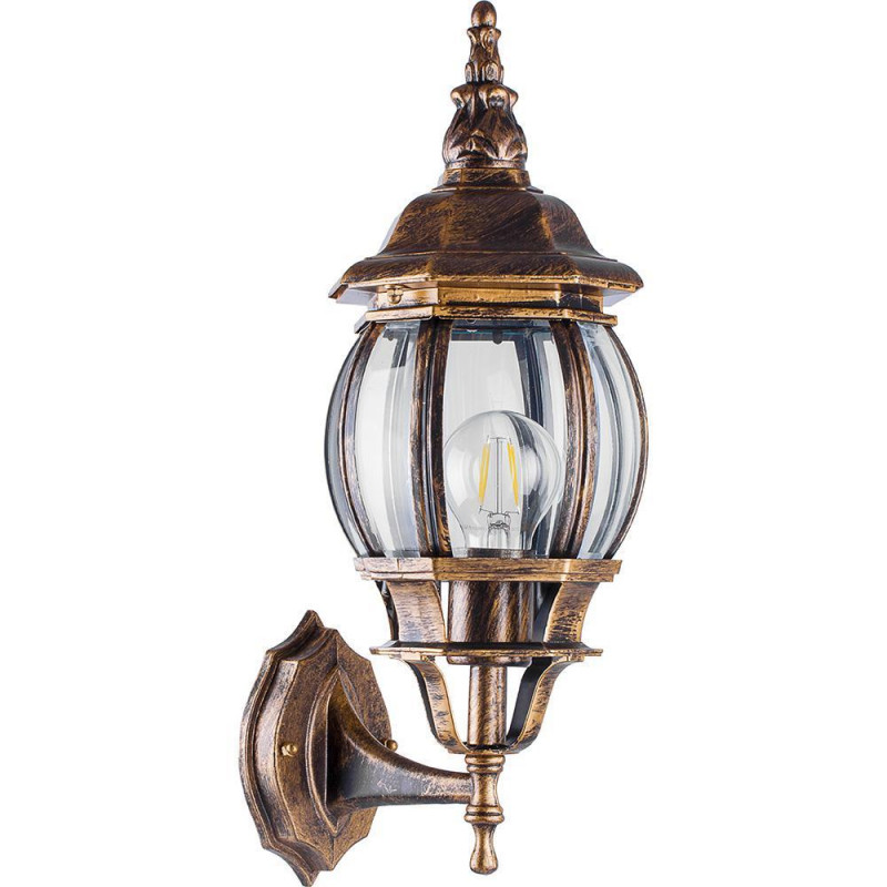 Светильник садово-парковый, серии «Классика» (НБУ) FERON 8101 1*100W, E27, 230V, IP44, цвет черное золото, 8-и гранник, на стену вверх, 160*195*420мм