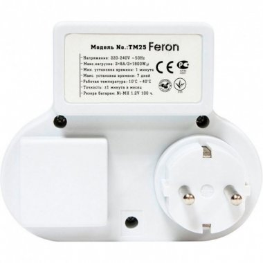 Технические характеристики Feron TM25 Розетка с таймером (недельная электронная), IP20, 230V, 3500W/16А , 100*120*77мм, 23236