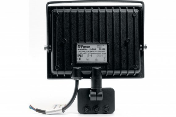 Технические характеристики Feron Прожектор светодиодный с датчиком движения 50W 6400K 230V черный IP44, LL-908 29558