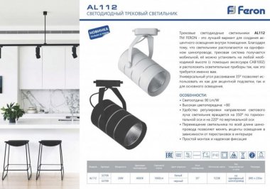 Feron AL112 Светильник трековый светодиодный на шинопровод, однофазный , 20W, 4000К , 230V, 1800Lm 32708