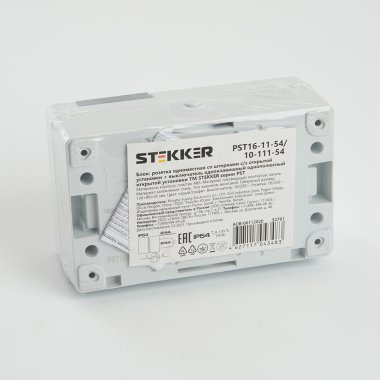 Розетка STEKKER PST16-11-54/10-121-54 (блок с выключателем двухклав., однополюсным для двух цепей с общим вводом, расстояние между монтажн. отвер-ми: по гориз. - 113мм, по вертик.- 65мм) на 1 гнездо, с крышкой, с заземлением. Материал: Полипропилен, ABS пластик, цвет серый-графит, размер 130*80*55мм. Номинальное напряжение 250, номинальный ток 16А, диапазон рабочих температур 0..+35°C, IP54
