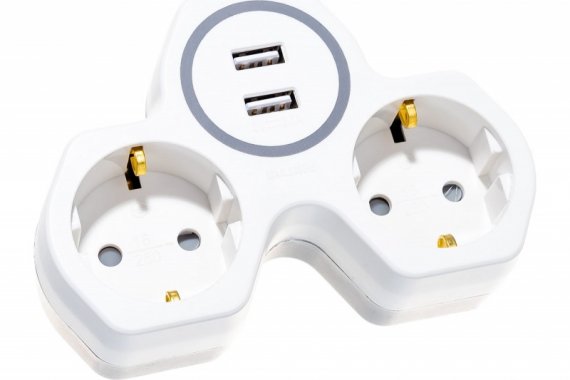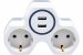 Разветвитель сетевой 2-местный и с 2-мя выходами USB, с/з, ADP16-14-20, белый/серый