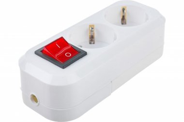 Розетка переносная разборная 2-местная с/з с выключателем PST16-211-20, белый