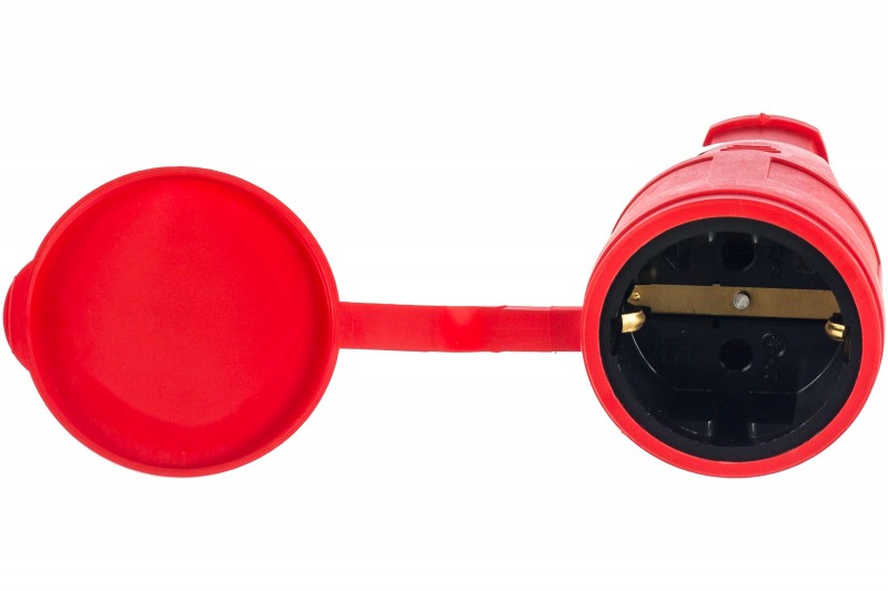 Розетка переносная 1-местная с/з, с крышкой, каучук, серия Одри, RST16-21-44 (РА 16-005), красный