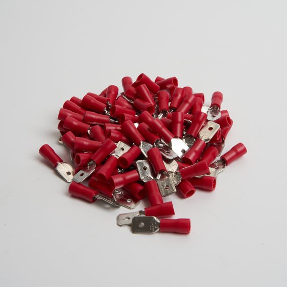 Наконечник плоский Изолированный папа STEKKER; 0,5-1,5 - 0,8 мм; 6,35 мм, латунь, поливинилхлорид (PVC), красный