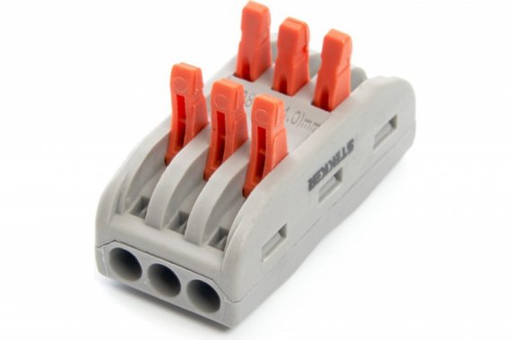 Клемма монтажная для фазных проводников, 3 контактные группы, (DIY упак 5 шт), LD222-423