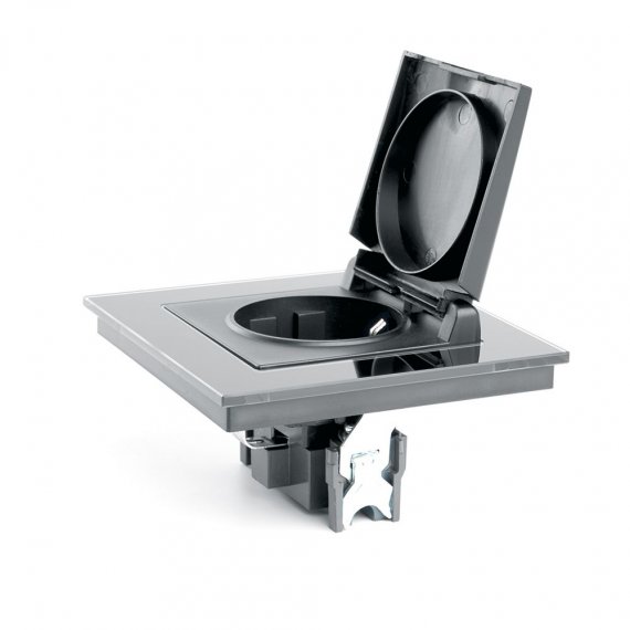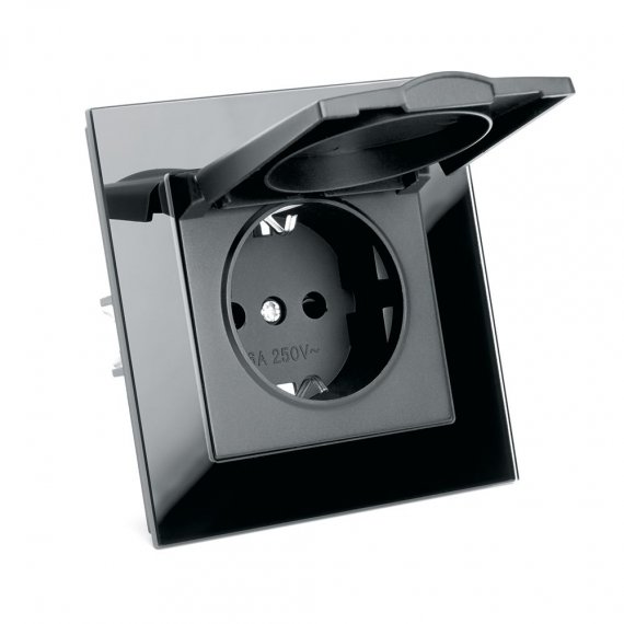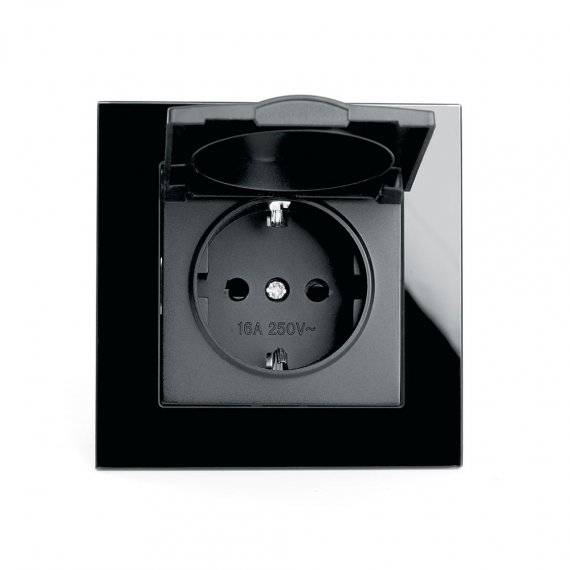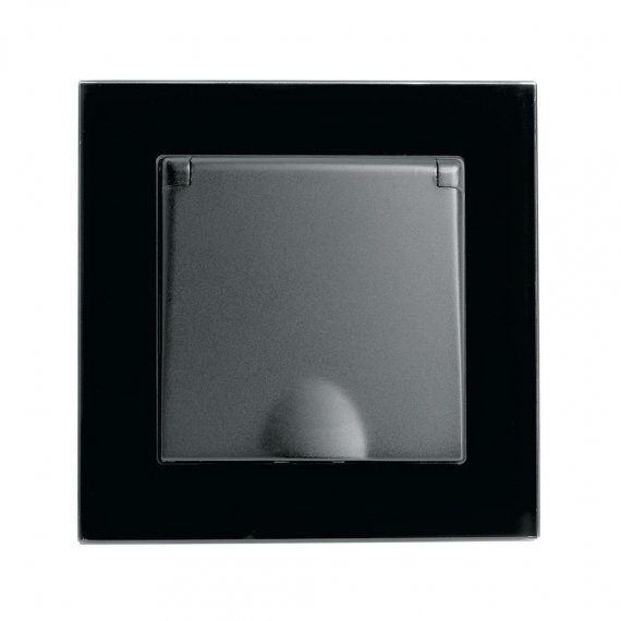 Розетка STEKKER GLS16-7012-05 (IP44 при закрытой крышке) на 1 гнездо, с крышкой, с заземлением. Материал: Закаленное стекло, ABS пластик, полипропилен, латунь, цвет черный, размер 84*84*35мм. Номинальное напряжение 250, номинальный ток 16А, диапазон рабочих температур 0..+35°C, IP20