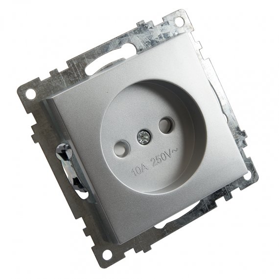 Розетка STEKKER GLS10-7109-03 на 1 гнездо, без заземления. Материал: ABS пластик, латунь, цвет серебро, размер 55*55*35мм. Номинальное напряжение 250, номинальный ток 10А, диапазон рабочих температур 0..+35°C, IP20
