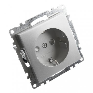 Розетка электрическая 1-местная с/з (механизм), 250В, 16А, серия Катрин, GLS16-7110-03, серебро