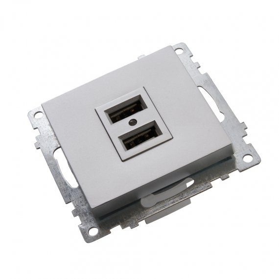 Розетка USB 2-местная (механизм), STEKKER GLS10-7115-03, 250B, 2,4А, серия Катрин, серебро
