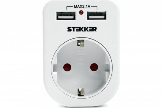 Переходник сетевой с/з (+ 2 USB 2,1А), 250В, 16A, ADP16-24-20, белый