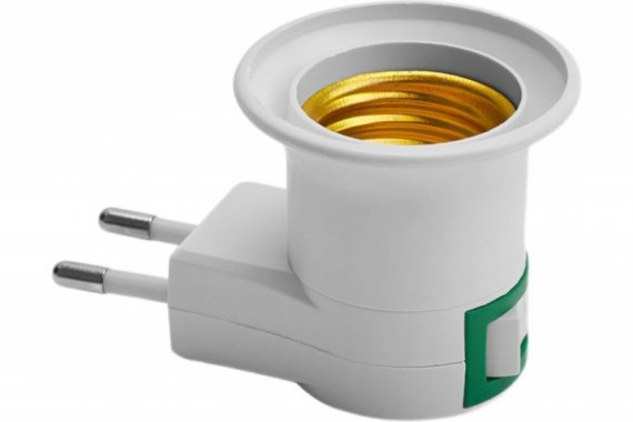 Патрон-переходник с E27 на розетку (для лампы E27), с выключ., 230V, пластик, белый, 40*60мм, LH61