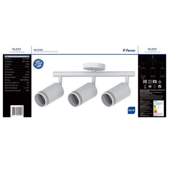 Feron Cветильник настенно-потолочный под лампу GU10, белый ML233 41490