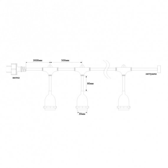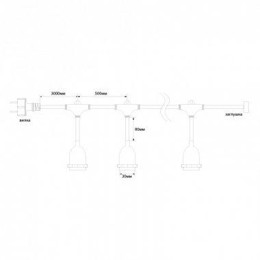 Гирлянда "Евро белт-лайт" на подвесах, 20 E27, шаг 50cm черный, 13м (3м сетевой шнур) IP65, CL50-13-1