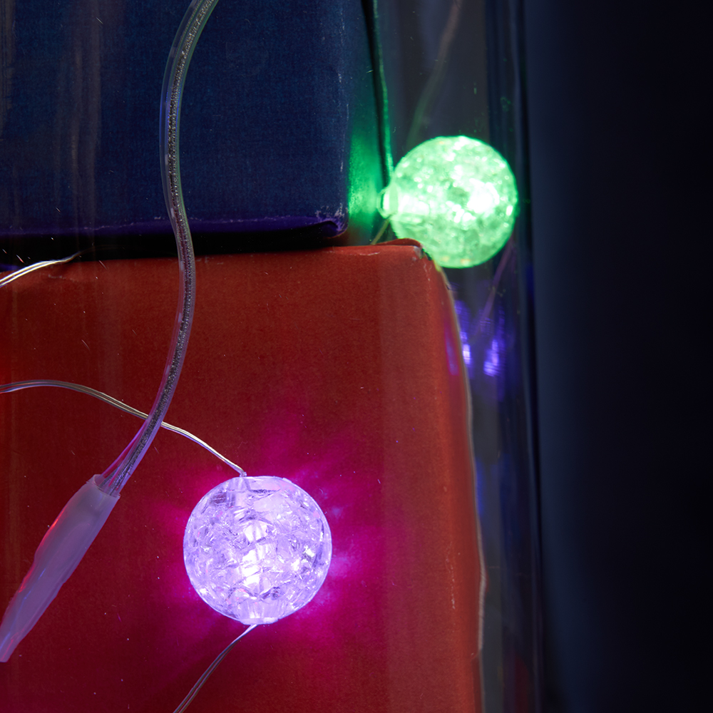 Светодиодная гирлянда Feron CL565 линейная Лед шарики, статичная 3м + 0.3м мультиколор с питанием от батареек, прозрачный шнур