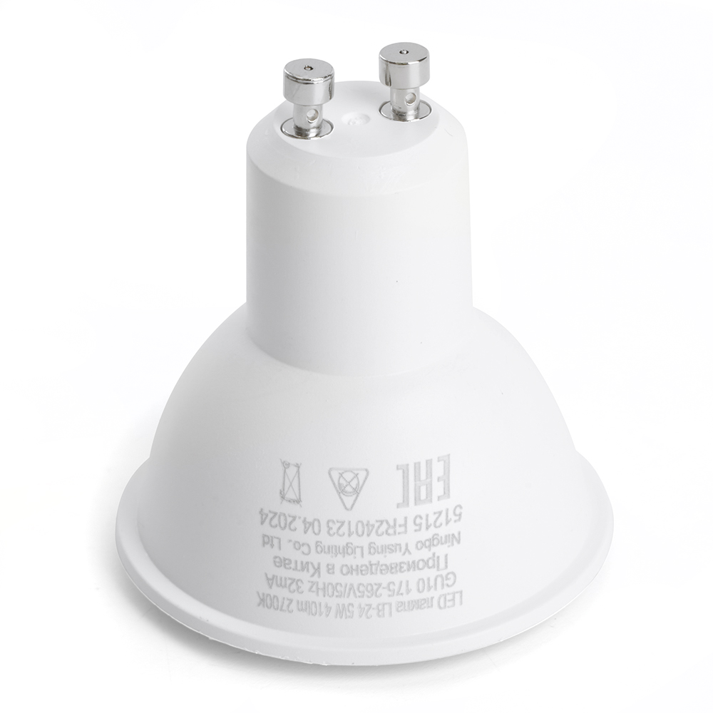 Лампа светодиодная FERON LB-24, MR16 (рефлекторная), 5W 175-265V GU10 4000К (белый), рассеиватель матовый белый, 420Lm, угол рассеивания 120°, корпус пластик, 55*50мм