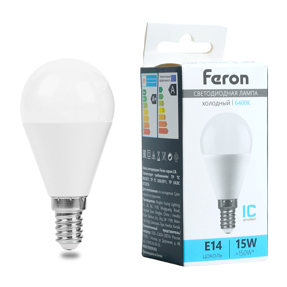 Купить по низким ценам Feron Лампа светодиодная , G45 (шар малый), 15W 175-265V E14 6400К (холодный), рассеиватель матовый белый, 1360Lm, угол рассеивания 220°, корпус пластик, 90*45мм, 52080Описание Feron Лампа светодиодная , G45 (шар малый), 15W 175-265V E14 6400К (холодный), рассеиватель матовый белый, 1360Lm, угол рассеивания 220°, корпус пластик, 90*45мм, 52080