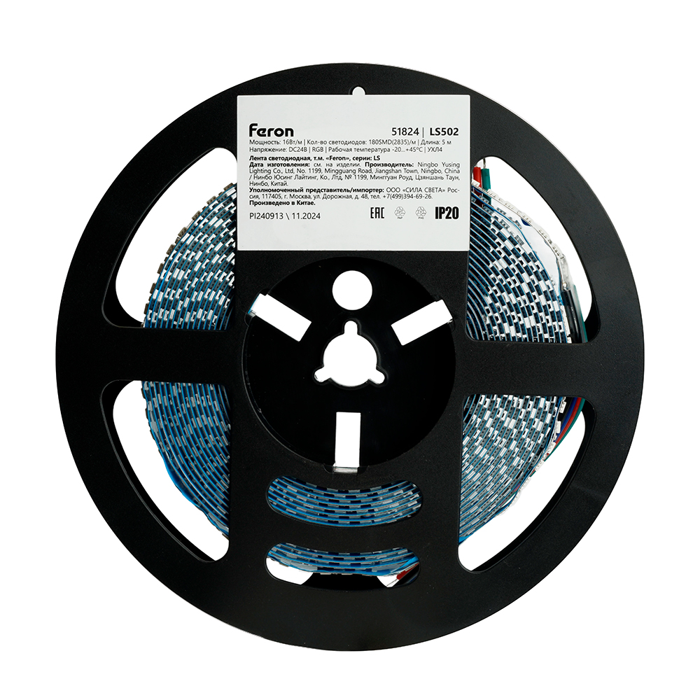 Светодиодная LED лента Feron LS502, 180SMD(5050)/м 16Вт/м 24V 5000*10*1.5мм RGB IP20
