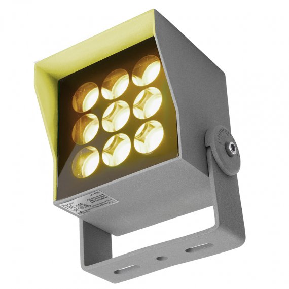 Прожектор ландшафтно-архитектурный светодиодный, на кронштейн (ДДУ) FERON LL-896, 9W, 2700К (теплый белый), 220-240V/50Гц, 720Lm, IP66, угол рассеивания 20°, 9LED*3030SMD, класс защиты 1, раб.t -45°C - +40°C, цвет металлик, корпус алюминий, 90*90*150мм,