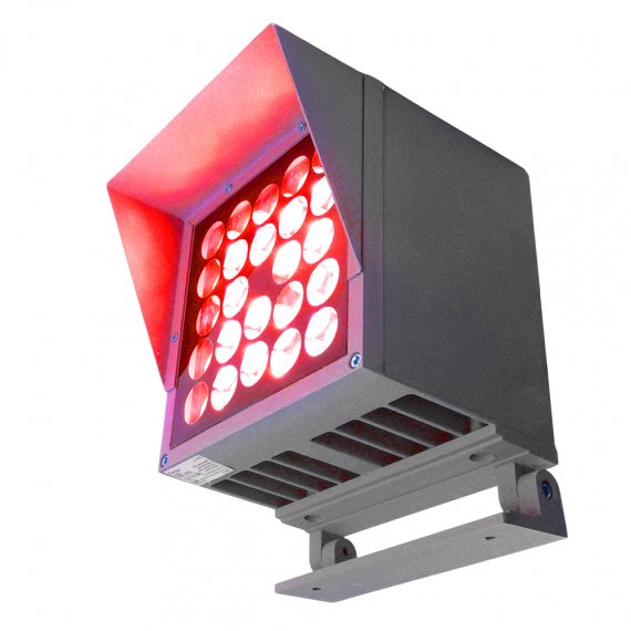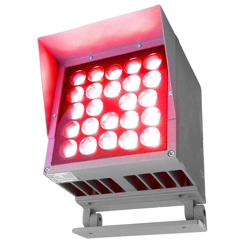 Прожектор ландшафтно-архитектурный светодиодный, на кронштейн (ДДУ) FERON LL-898, 49W, (красный), 220-240V/50Гц, IP66, угол рассеивания 20°, 24LED*3535SMD, класс защиты 1, раб.t -45°C - +40°C, цвет металлик, корпус алюминий, 150*150*180мм,