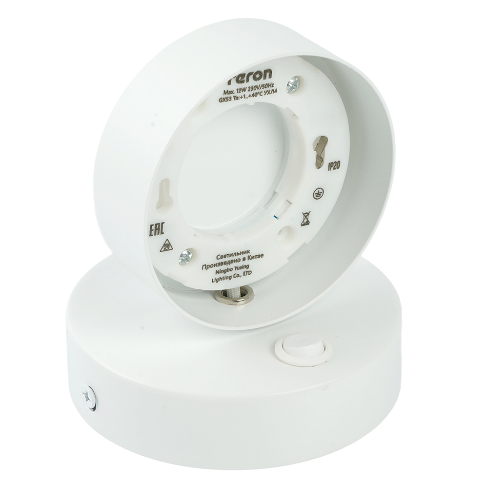 Feron Светильник накладной под лампу, спот (-) , GX53 12W, 230V, IP20, цвет белый, корпус алюминий, 51942