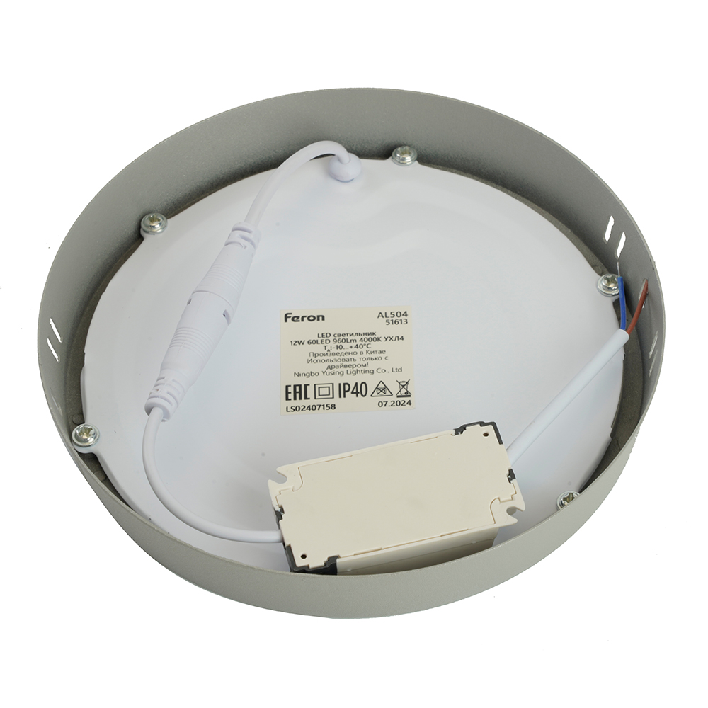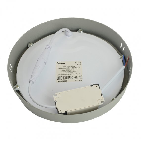 Технические характеристики Feron Светильник накладной светодиодный, потолочный (ДПО) , 12W, 4000К (белый), 175-265V, 960Lm, IP40, угол рассеивания 120°, 51613