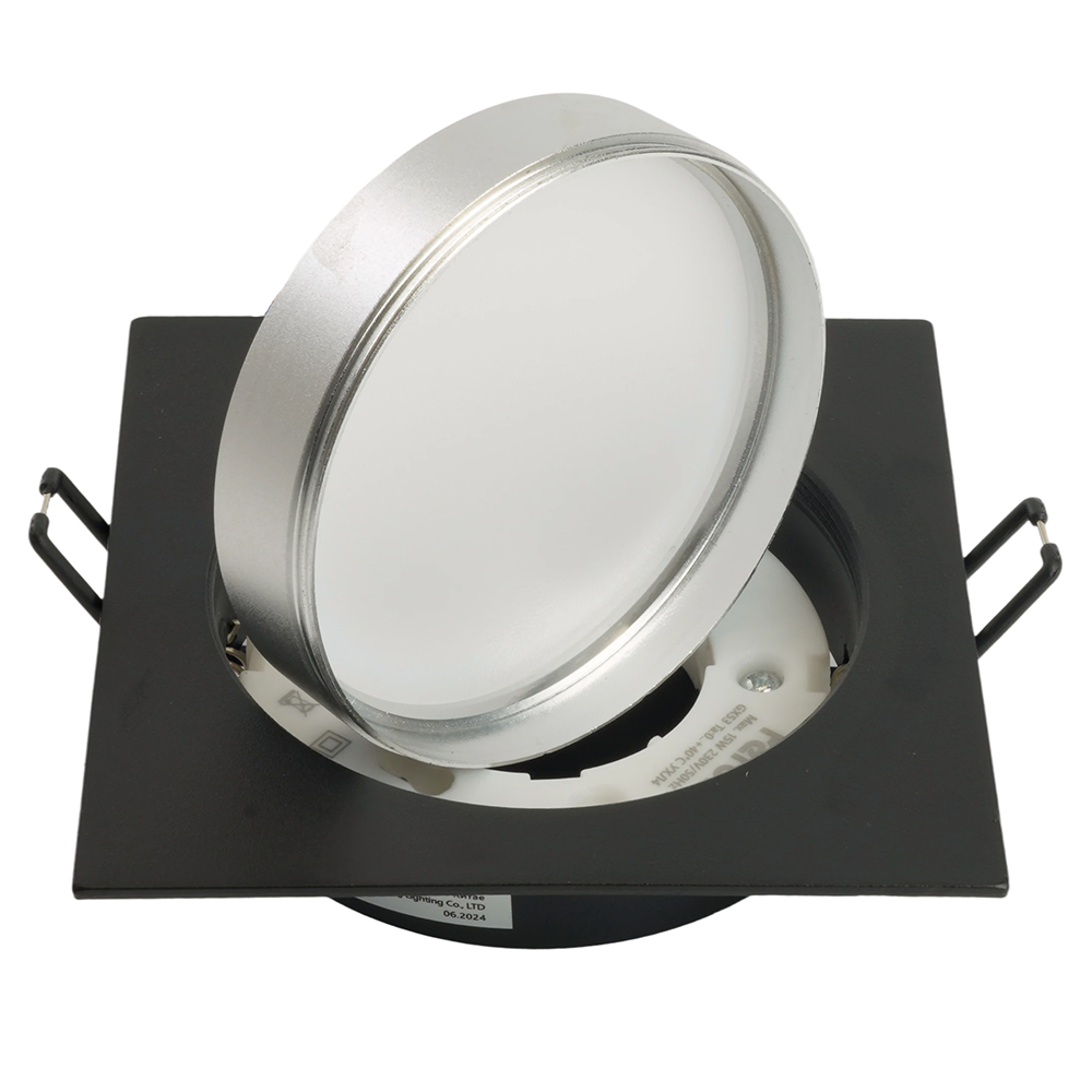 Светильник потолочный встраиваемый (ФВО) FERON DL506, под лампу GX53 GX53, черный+серебро, квадрат, 110*110*40 мм, монтажный диаметр 90мм, корпус металл+акрил, неповоротный