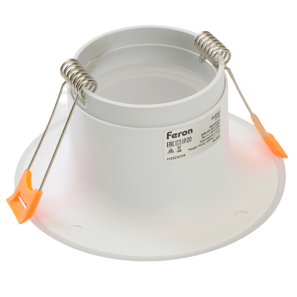 Светильник потолочный встраиваемый (ИВО) FERON DL8260, под лампу MR16 G5.3, прозрачный белый, круг, 100*100*55 мм, монтажный диаметр 88мм, корпус пластик+акрил, неповоротный