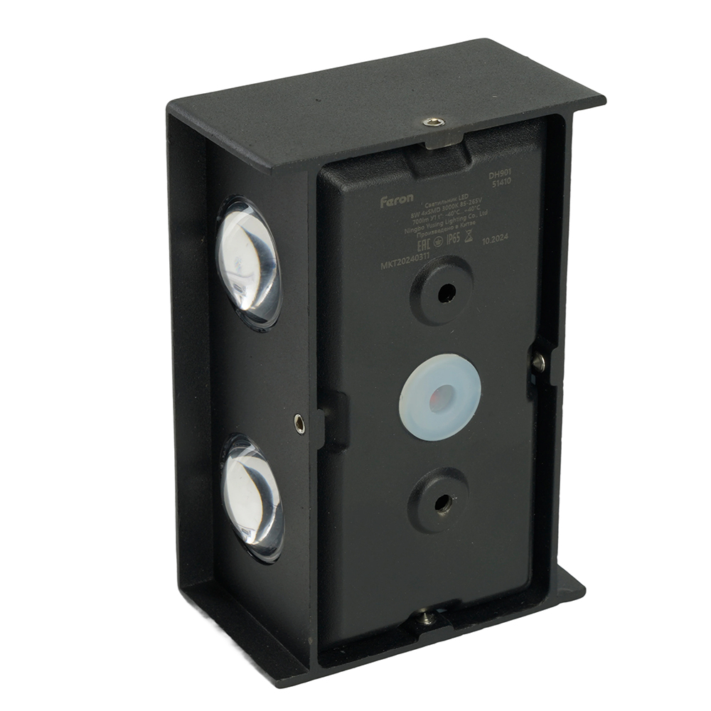 Светильник уличный светодиодный, на стену (ДБУ) FERON DH901, серия Нью-Йорк, 8W, 3000К (теплый белый), 85-265V/50Гц, 700Lm, IP65, 4LED*SMD, класс защиты 1, раб.t -40°C...+40°C, цвет черный, корпус алюминий, 112*79*43мм,