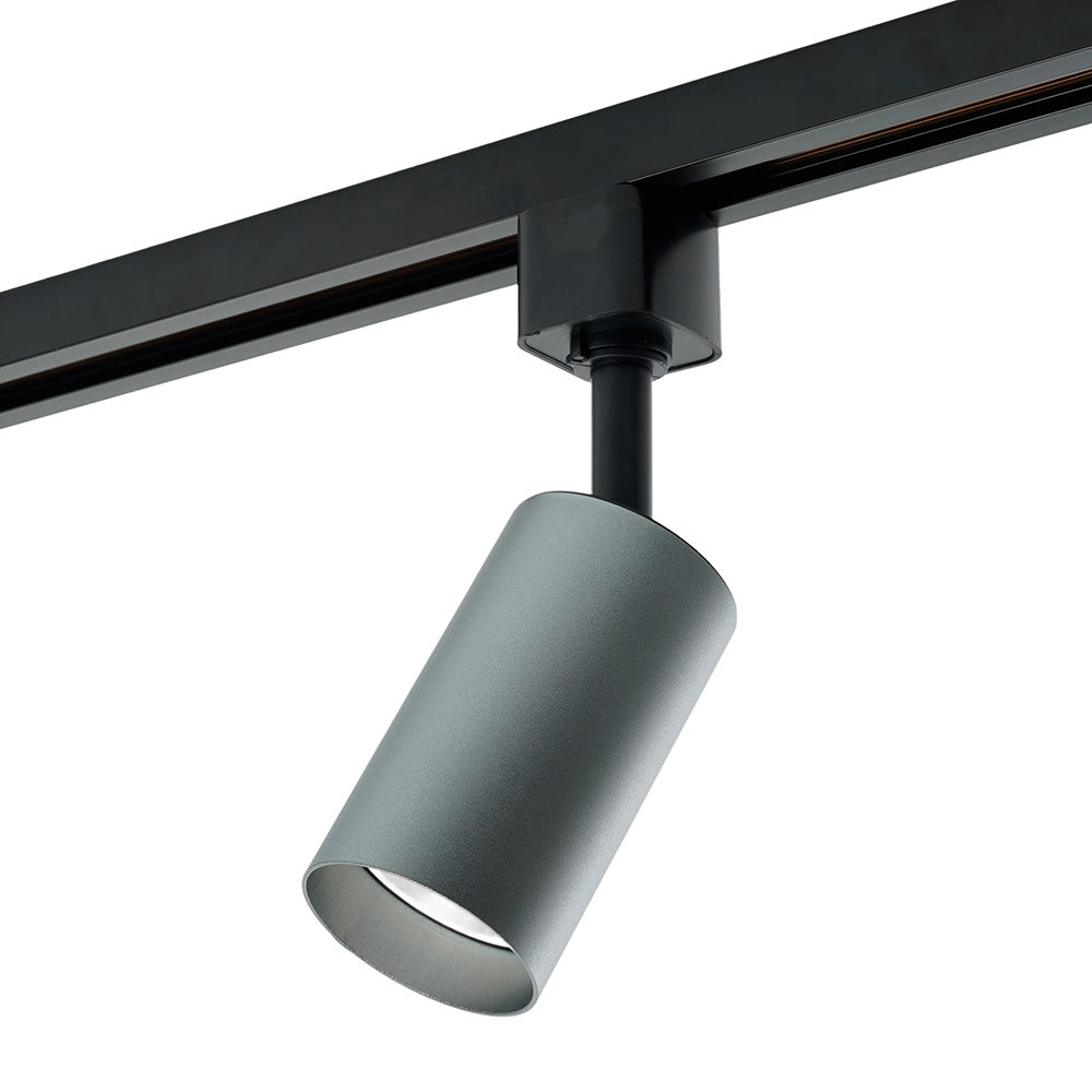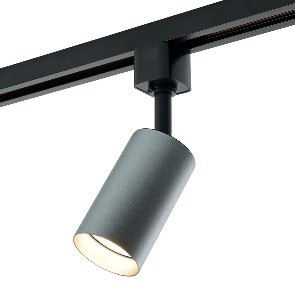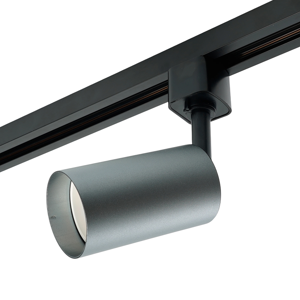 Светильники трековые на шинопровод GU10, однофазный (ИВО) FERON AL155, 15W, 230V, цвет графит, корпус алюминий, вращение →350°/↓90°, 56*56*180 мм