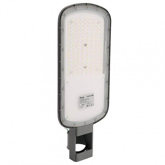 Уличный светильник консольный светодиодный, на столб (ДКУ) FERON SP3070, 100W, 5000К (дневной), 90-300V/50Гц, 16000Lm, IP66, угол рассеивания 120°, 120LED*SMD3030, класс защиты 1, раб.t -55°..+50°С, цвет серый, корпус алюминий, 476*204*75мм,